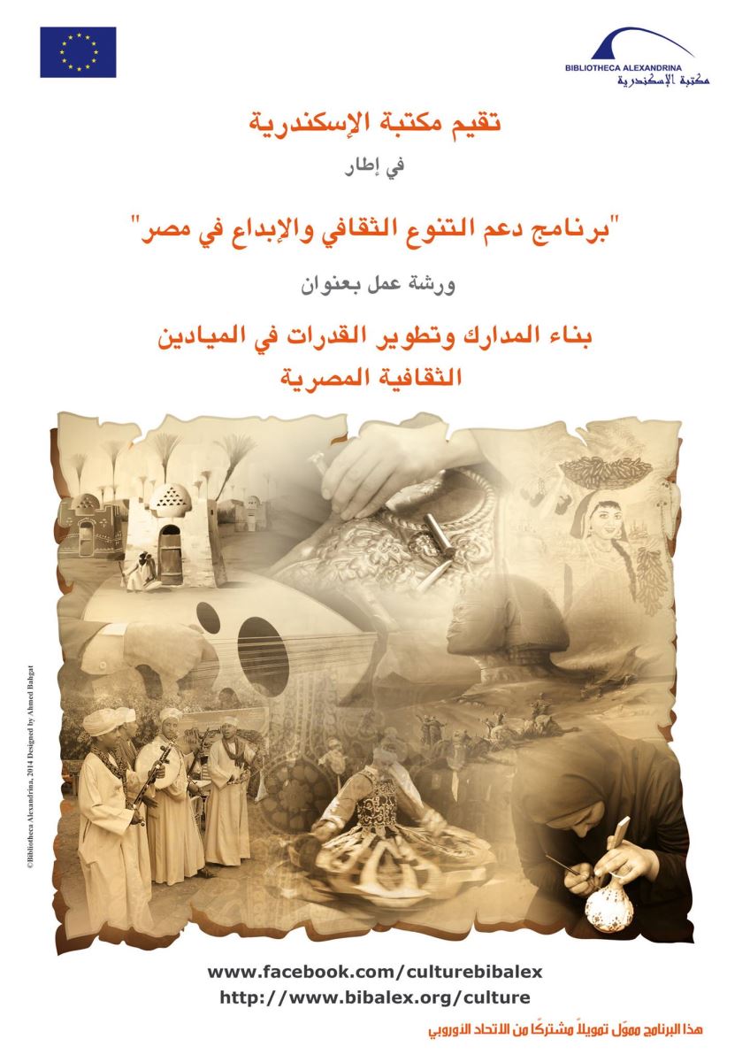تدعو مكتبة الإسكندرية العاملين بالميادين الثقافية المصرية للاشتراك في ورشة العمل الرابعة التي تتم في إطار مشروع "دعم التنوع الثقافي والابتكار في مصر" بهدف دعم ورسم خريطة للصناعات الثقافية في مصر.