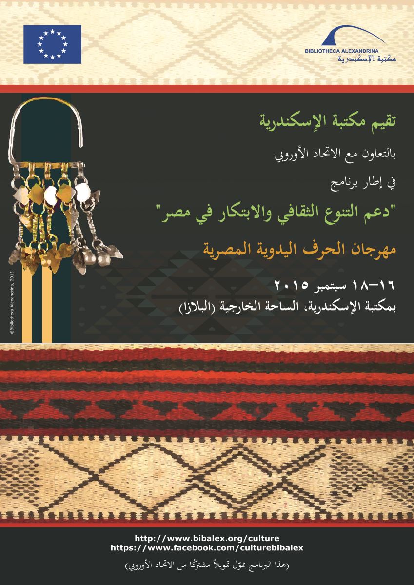 تقيم مكتبة الإسكندرية بالتعاون مع الاتحاد الأوروبي مهرجان للحرف اليدوية المصرية في بلازا مكتبة الإسكندرية، في الفترة من 16 إلى 18 سبتمبر 2015، وذلك في إطار برنامج "دعم التنوع الثقافي والابتكار في مصر"، والممول تمويلًا مشتركًا من الاتحاد الأوروبي.