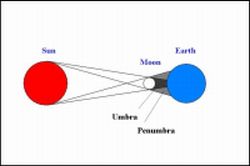 The outer and larger part of the lunar shadow is called the penumbra. The eclipse is partial only in the regions covered by the penumbra. The penumbra extends for about 16,000 km and it may be over 3,000 km wide. Many people watch the partial eclipse, and there are those who are lucky enough that the totality path passes across their homes.