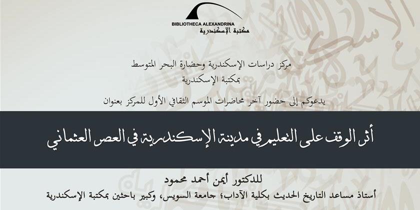 The Alexandria and Mediterranean Research Center (Alex Med) at the BA organizes a lecture entitled “The Influence of Waqf on Education in Alexandria in the Ottoman Period” on 29 November 2018, at 2:00 pm, in the Auditorium. It is delivered by Dr. Ayman Ahmed Mahmoud, Associate Professor of Modern History t the Faculty of Arts, Suez University, and Senior Researcher at the BA, and commented on by Dr. Mervat Assaad Atallah, Professor of Modern and Contemporary History, and Vice Dean of the Faculty of Education, Alexandria University.