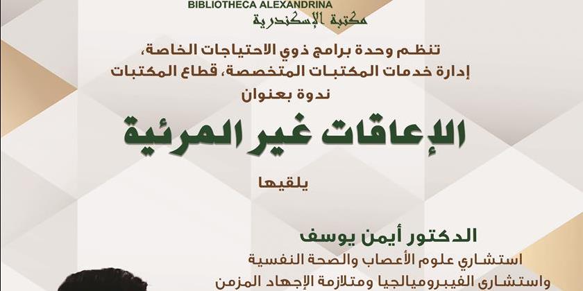 The BA Special Needs Programs Unit organizes a seminar entitled “Invisible Disabilities”, delivered by neuroscientist and Fibromyalgia and Chronic Stress Syndrome consultant Dr. Ayman Youssef. It is held on Tuesday, 21 February 2023, at 11:00 am, in the BACC Lecture Hall.
