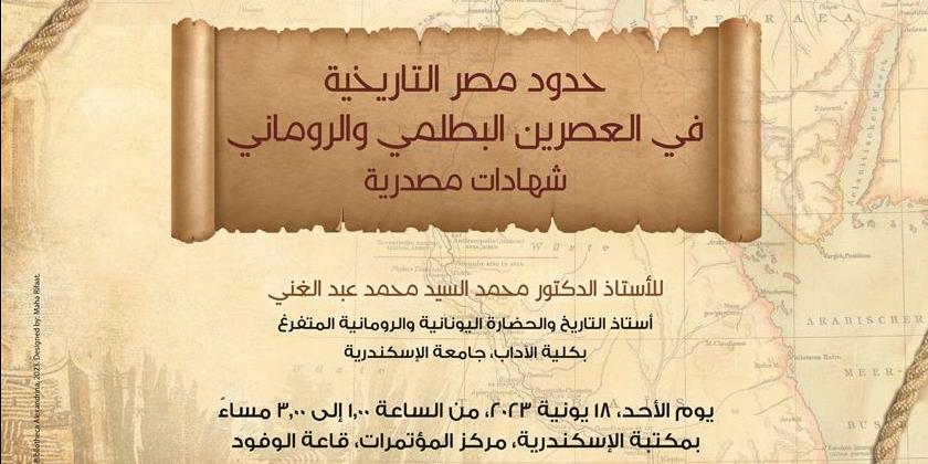 The BA Alexandria Project organizes a lecture entitled “Egypt’s Historical Boundaries in the Ptolemaic and Roman Eras – Source Testimonies”, delivered by Prof. Mohamed El-Sayed Abdel Ghani, Professor Emeritus of Greek and Roman History and Civilization at the Faculty of Arts, Alexandria University. The lecture is held on Sunday, 18 June 2023, at 1:00 pm, in the BACC Delegates Hall.