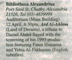09 Apr 2026 Ard Al-Ahlam (Land of Dreams), a tribute to Daoud Abdel-Sayed with the screening of his 1993 Al-Ahram Weekly