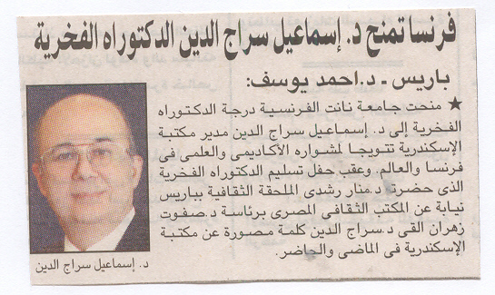 France Gives Dr. Ismail Seragedlin an Honorary Doctorate