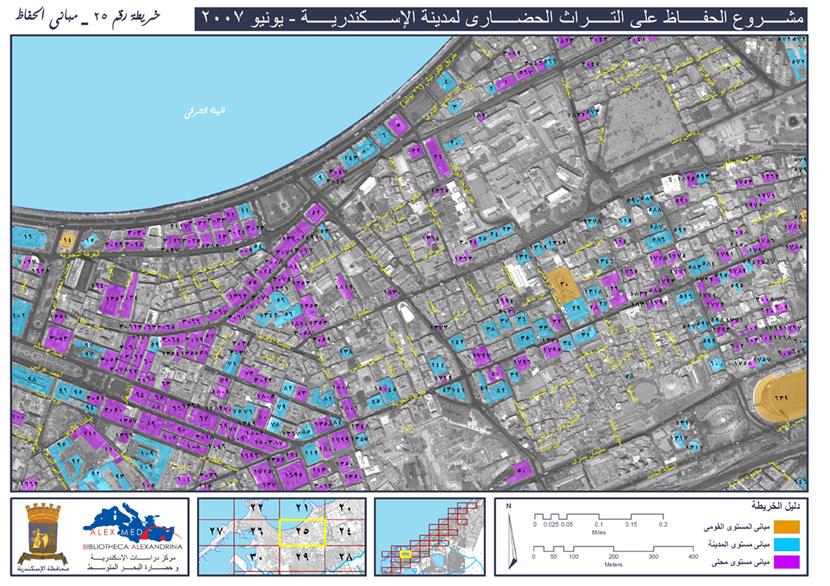 Le gouvernorat d’Alexandrie abrite des bâtiments, des rues et des quartiers historiques, outre les œuvres d’art, dignes d’être préservés. Ainsi, Dr Mohamed Awad a fondé, en décembre 1999, le Centre de Préservation du Patrimoine d’Alexandrie (APT), un organisme voué à accroître la sensibilisation à la conservation du patrimoine culturel d’Alexandrie, avec un accent particulier sur l’environnement bâti. Dans la cadre du Fonds de la Préservation d’Alexandrie (AFTP), Dr Awad a dressé une liste des bâtiments à protéger de la démolition. Par la suite, le gouverneur d’Alexandrie a officiellement demandé à la BA d’élaborer un catalogue ainsi qu’une base de données recensant les bâtiments, quartiers, rues et œuvres d’art historiques d’Alexandrie via le Système d’Information Géographique (SIG). Le Gouverneur a également nommé deux comités ayant pour vocation d’identifier les bâtiments historiques de la ville tout entière, et dont l’organisation du travail incombe à la BA et le Centre des Recherches Alexandrines et Méditerranéennes (Alex Med).