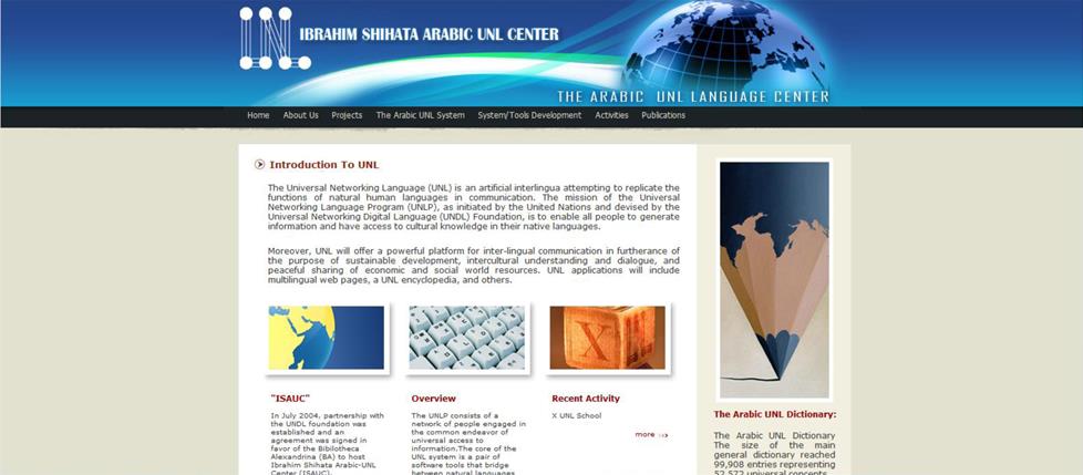 Initié par les Nations Unies et conçu par la Fondation du Langage Universel de Communication sur Internet (UNDL), l’UNL a pour objectif ultime de permettre aux gens de générer des informations et d’accéder à la connaissance culturelle à partir de leur langue maternelle. Le projet représente une nouvelle technique qui tend à surmonter les barrières de la diversité linguistique à l’échelle mondiale et de combler ainsi le fossé culturel entre les peuples et les civilisations. L’UNL est un langage artificiel substituant les fonctions de la langue naturelle dans les communications humaines. Les applications de l’UNL incluent entre autres des pages web multilingues et une encyclopédie d’UNL. A présent, 15 langues y sont impliquées et un nombre d’institutions ont entamé le travail sur leurs langues maternelles. La BA a signé un accord avec la Fondation UNDL en vue d’héberger le Centre Ibrahim Shihata pour le Langage Universel de Communication sur Internet (ISAUC). Etant le seul centre arabe participant au projet, ISAUC est chargé de la conception et la mise en œuvre du contenu arabe.