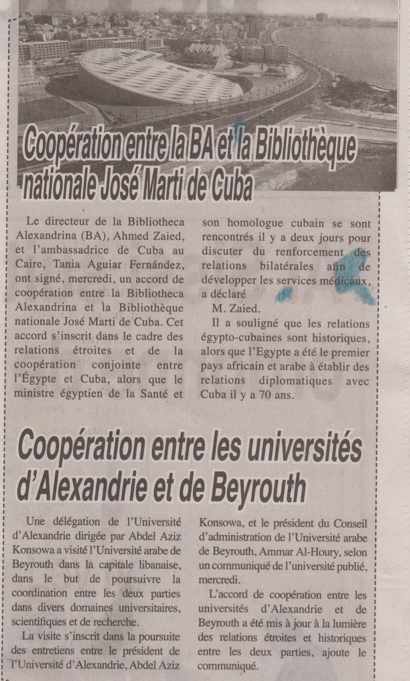 25 nov. 2022 Coopération entre la BA et la Bibliothèque nationale josé Marti de Cuba Le Progrès Egyptien