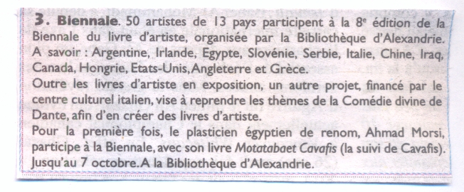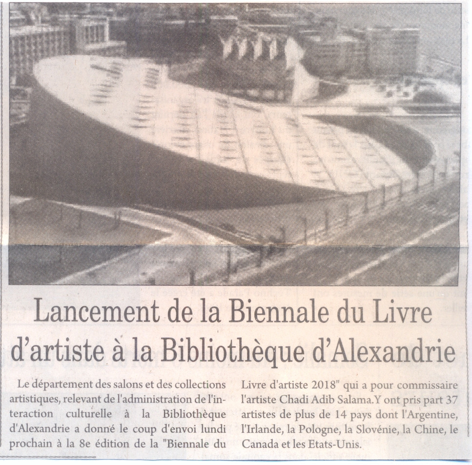 11 sept. 2018 Lancement de la Biennale du livre d'artiste a la Bibliotheque d'Alexandrie Le Progrès Egyptien