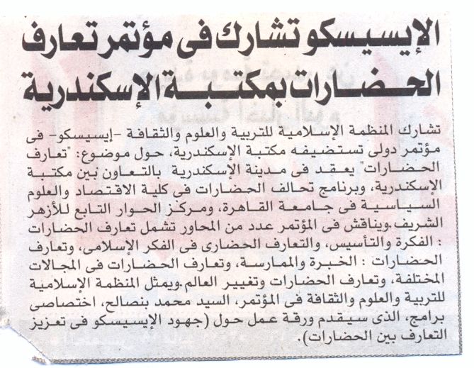 الإيسيسكو تشارك في مؤتمر تعارف الحضارات بمكتبة الإسكندرية