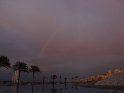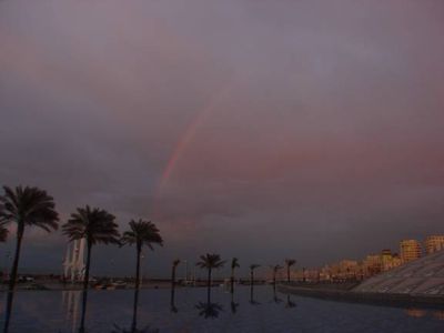 On the late evening of 13 February 2008, it rained heavily, in Alexandria, Egypt. Observing the powerful rainstorm from the BA Plaza, BA Senior Astronomy Specialist, Aymen Ibrahem, imaged a spectacular rainbow, and recorded the entire stages of its development. While fading gradually, during sunset, the rainbow glowed in a fascinating red hue. This rainbow is known as red bow.
