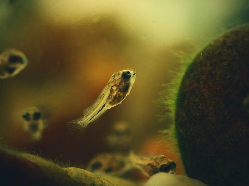 It is known that fish lay eggs, which hatch after a while outside the body of the mother; yet, are there fish that get pregnant and give birth? If you enjoy cultivating fish in aquariums, you will notice that guppy, also known as millionfish and rainbow fish, keep their eggs inside their bodies; when the eggs hatch, the mother gives birth to free-swimming live young fish. The guppy gestation period ranges from 21–30 days; depending on the tank's temperature and cleanliness, and the female's health. Breeders recognize the signs of a pregnant guppy, such as significant weight gain and the appearance of a dark spot near the anus under the tail. After that, the female drops between 2–200 baby guppies, also known as fry, within 4–6 hours, and sometimes 12 hours in extreme cases.