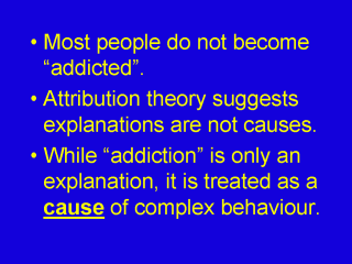 “Addiction” is only an explanation, but it is treated as if it were a proven cause. It