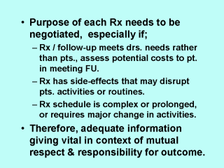 doctors’ needs rather than the patients needs, and the doctor may fail to take into