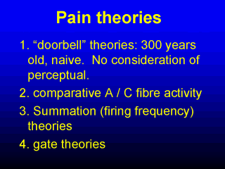 fibres, summation of neuronal activity, and more recently gate theories (which only allow