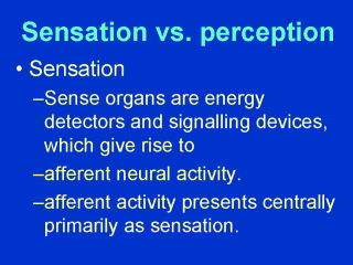 arises from the activation of peripheral energy detectors (senses), which in turn send
