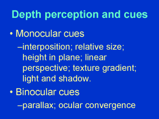 closed, there are a number of stimulus cues which contribute to depth perception. These