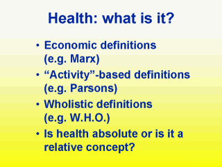 health in an airline pilot than in a clerk. This suggests that health is relative. Also,