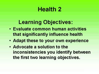 completion of this section, you should be to evaluate common human activities that significantly influence health. Ideally, in addition to considering those I have listed, you should try to identify more of your own. You should consider how these examples fit in terms of your own experience of living in Hong Kong, from what you read in the papers, what happens to your family and those of your friends. Finally, you should be able to identify inconsistencies that exist between what people do (or have done to them), particularly those in your social group and the impact this will have on their health, and try to think of and propose a solution to deal with those inconsistencies. |