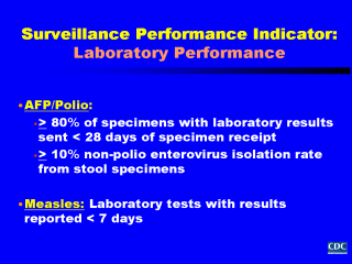 reporting of laboratory results, and in the case of AFP, viral isolation rates. |
