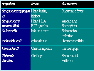 Cross-Reactions between microbes and mammalian tissue