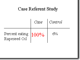 が実施された。その全てで一致していたことは、 症例群では対照群に比べて菜種油を摂っていたものの割合がはるかに多いという ことであった。