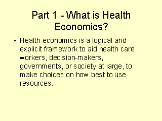 -the best way to finance health care systems (e.g.. public or private finance); -the study of supply and demand for health care (the study of health care markets); - valuing health and assessing the relationship between health and its social and economic determinants (analysis of the relationship between health status and income); - as an aid to management of health services (needs assessment); - microeconomic evaluation (concerned with comparing the resource implications of alternative ways to deliver health care e.g. an assessment of the efficiency of new health technologies such as MRI scans). The basis and techniques of microeconomic evaluation form the core of the book Elementary Economic Evaluation in Health Care by Tom Jefferson, Vittorio Demicheli and Miranda Mugford, published in 1996 by the BMJ Publishing Group. Readers should refer to this book for a more detailed description of the techniques and worked examples. |