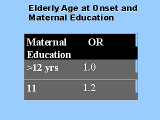 In adults, the education relationship actually is opposite to that of youth onset, suggesting again that there is a different etiology in relationship to the age at onset.