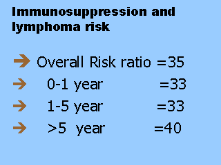 People who are immunosupressed due to transplant are at markedly increased risk for lymphomas.