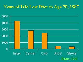 This impact is common to both areas with developed economies and those whose economies are developing. Injuries also represent a significant burden from the standpoint of costs. The total lifetime cost of injury to the United States in 1988 was estimated at $180 billion. These include costs for medical treatment, as well as the costs associated with lost productivity and premature mortality. |