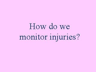 Typically, the methods available to monitor injuries are quite diverse. They range from the study of injury deaths on death certificates, to specific injury surveillance systems (e.g. traumatic brain injury systems), to registries recording all injury events. Which source to use to monitor injuries is often the first question that an injury researcher must answer. The answer is largely defined by the type of injury that one wants to identify, by its usual level of severity, by the resources available for monitoring, and by the feasibility of monitoring the injuries in the community. |