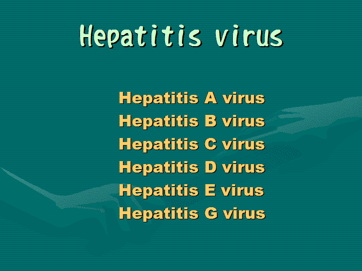 到目前為止(1998),已經有六種肝炎病毒被確定出來,分別命名為 A、B、C、D、E 及 G 型肝炎病毒。
