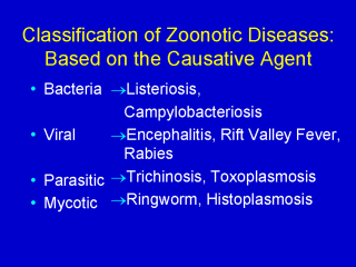 A wide variety of organisms are capable of causing zoonotic diseases ranging from relatively simple microscopic viruses to tapeworms that may be more than a meter in length.