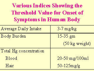 This is level at which nervous symptoms would appear in the most sensitive adults. FAO/WHO noted that pregnant women and nursing mothers are likely to be at greater risk, although the available data were insufficient to recommend a specific mercury in take for these population groups (WHO, 1990). |
