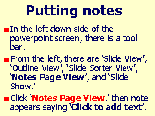 From the left, there are Slide View, Outline View, Slide Sorter View, Notes Page View&, and Slide Show.