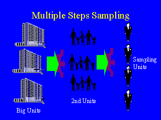 在多重階梯抽樣方式中,我們首先抽樣較大的單元(如:城市或學校等),接著在每一個大單元中抽樣中型單元(如:街道或是班級等),最後,再在這些中型單元中做單元抽樣(如:家庭或是個體等)。