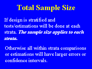 The sample size applies to the comparison we want to make. If it is important to have an estimate of prevalence for each strata and sex in which we will classify our subjects, then the sample size calculated apply to each of these estimations. Otherwise the over all estimate will be within the bounds prescribed in the design but the individual comparisons will lack both precision and power; rendering the comparisons virtually useless. |