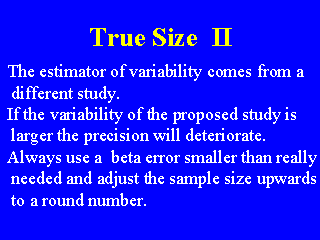 Thus if you err at least the estimated will have the precision required or more. Cost will be higher but better to spend a little more in observing more subjects, than have a set of estimates that are valueless because of their large confidence intervals. |