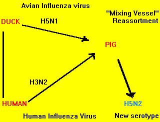 For example, an avian virus H5N1 happens to infect a domestic pig, and