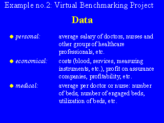 was created for the representation and comparison of the data. In 1997, the WWW version of the project was developed to improve the communication among all participants and to facilitate the access to the benchmarking data. Firstly the data set accessible via Internet was defined. It is a subset of "OZISAL" data set.