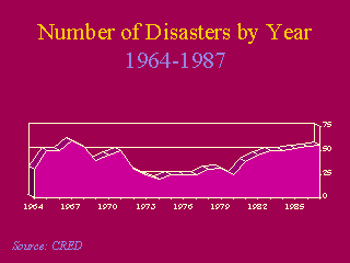 eruptions) occur less frequently. The increase noted in disasters between 1980 and 1987