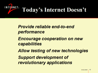 | Today’s Internet has serious shortcomings. Some of them are performance or technically related, which limit the kinds of applications and capabilities the Internet can support. Other limitations affect the ability to innovate new capabilities that would address some of the performance and technical limitations. |