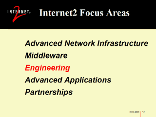 These are the five areas that Internet2, Internet2 members, and partner organizations are focused on.