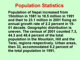 total population. Population Density, for the year 2001 in estimated to be 157 persons per sq. km. |