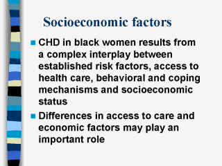 access to cardiovascular care as well as psychosocial and economic factors may be as