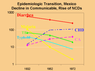 The epidemiologic transition has been clearly noted in most countries in the last century. Here in Mexico, almost all of the infectious diseases were reduced, as this occurred, life expectancy rose, and CHD and CA were unmasked. This demonstrates the systems of disease on a population basis. |