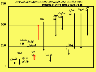 امراض الشرايين التاجية بالقلب حسب الدول ، للذكور ذوى الاعمار