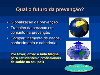 Após ler, favor encaminhar para pelo menos 10 pessoas no seu país, assim como listas de endereços eletrônicos. No queremos "contaminar" seus amigos e seu país com a prevenção via Internet. Como fazer parte da Rede Global de Saúde? Para fazer parte da Rede Global de Saúde do Supercourse, inscreva-se na página http://www.pitt.edu/~super1/assist/join.htm ou mande uma mensagem de correio eletrônico para Nós do projeto Supercourse esperamos poder colaborar com você! "A caminhada de mil quilômetros começa com o primeiro passo