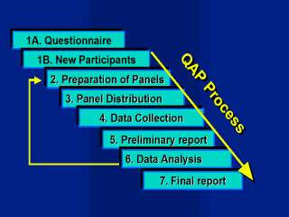 | The QAP process A summary of the process from when the decision is made to set up a QAP to the time a report is produced and distributed to participants involves not only planning, research, evaluation and validation, but the actual process of designing, manufacturing, distributing the panel then collecting, collating and analysing the results and sending out a report. Appropriate feedback to the laboratories requires consideration of the overall results and includes designing the subsequent QAP. The steps involved include: