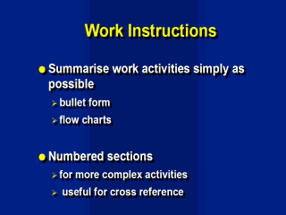 Simple work activities may be summarised as simply as possible, for example in bullet point form and more complex activities may be structured in sections.