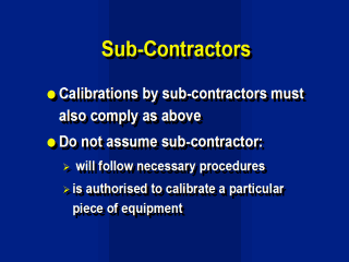 laboratory. Accreditation to ISO/IEC 17025 or to ISO Guide 25 is evidence that a sub-contractor is competent. Nevertheless, it is essential to be very clear in contractual arrangements with subcontractors, and in communications with them. Sub-contractors need to know all the relevant requirements of the laboratory, including criteria for acceptability of the equipment to be calibrated. |